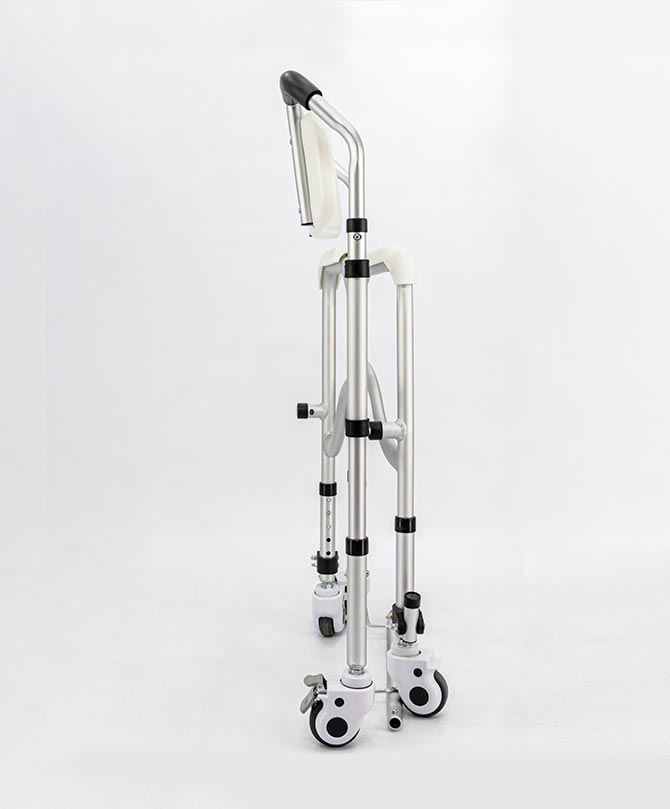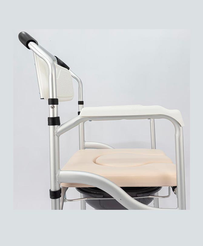Com estrutura em alumínio resistente e leve, a Verona pesa apenas 9 kg e suporta até 110 kg, sendo de fácil transporte e higienização. Possui rodízios giratórios com freios traseiros, assento almofadado com abertura frontal e um coletor com tampa que pode ser removido por trás, sem a necessidade de movimentar o paciente.