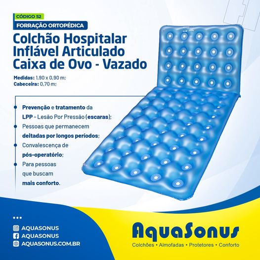 Inflar o produto o suficiente que garanta o conforto do paciente no uso, não encha com ar proveniente de equipamentos de grande pressão, apenas com o ar gerado do sopro humano. A pressão deverá ser o suficiente para que o paciente não encoste no fundo, ou base de onde esta sendo colocado.