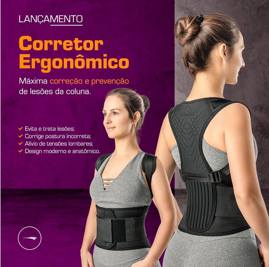 Abra o produto por completo. Vista o corretor nas costas. Feche a aba sobre o abdômen. Corrija a postura, posicionando os ombros para trás. Puxe as tiras lateralmente e fixe-as no velcro abdominal. Após, feche as faixas elásticas ajustando a compressão.