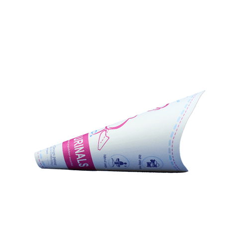 Produzido em papel descartável e a prova d’água, este discreto produto em forma de funil, permite que mulheres urinem em pé em banheiros públicos ou com baixa higienização, evitando o agachamento ou mesmo se sentar em vasos sanitários, proporcionando maior higiene e segurança.